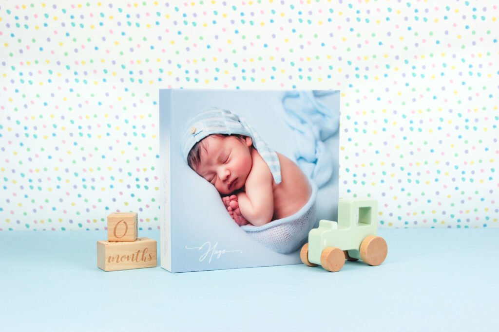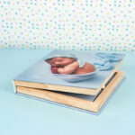 Caja compuesta por doble bastidor de madera natural, con cubierta personalizada completa con fotografía laminada.