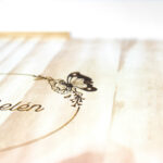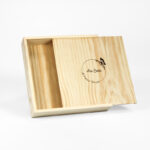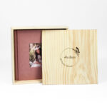 Álbum con portada personalizada o lisa en lino o polipiel. El álbum va acompañado de su caja de cartón blanca a medida.