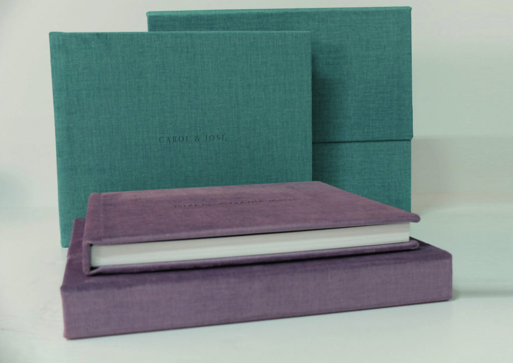 Serie de álbumes que usan el lino como material básico. Tapas y cajas de apariencia orgánica y natural. Es una nueva tendencia que se extiende en el mercado de álbumes de boda.