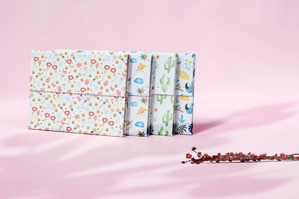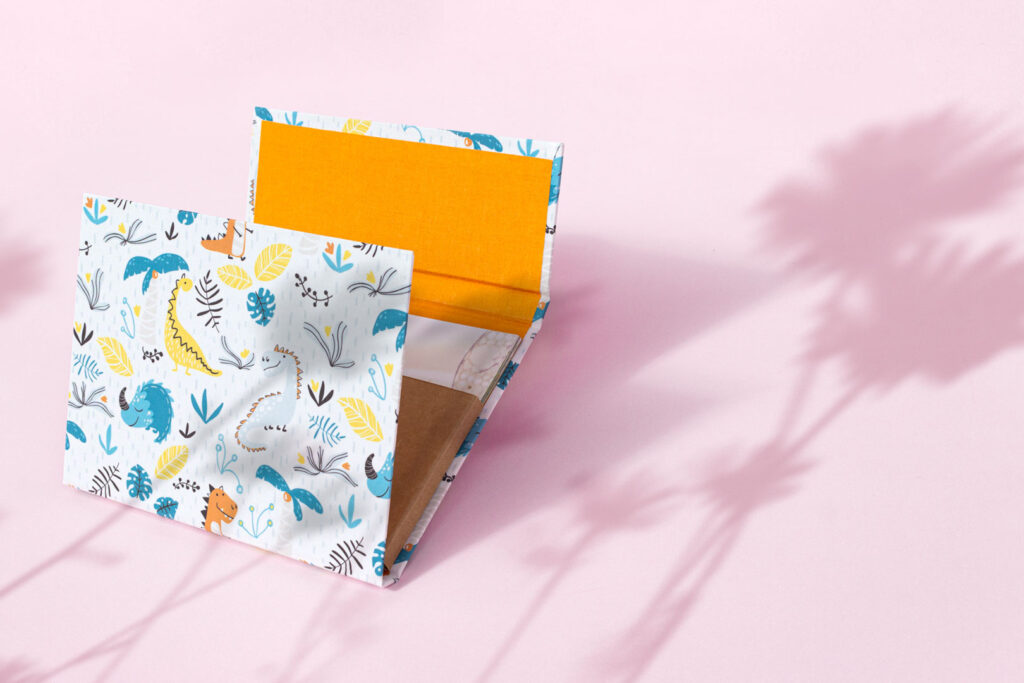 Cierre mediante solapa con imán y sujeción Kraft.