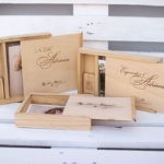 Caja de madera vista grabada a láser de 15×20 cm horizontal, con hueco para pendrive.