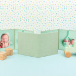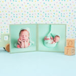 Díptico con dos fotografías en papel fotográfico 14x14cm con portada forrada en lino, tanto liso como estampado.