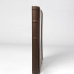 Trasera, lomo y frontal: Polipiel Rugosa Chocolate.