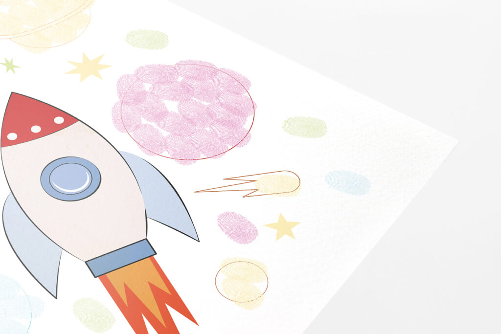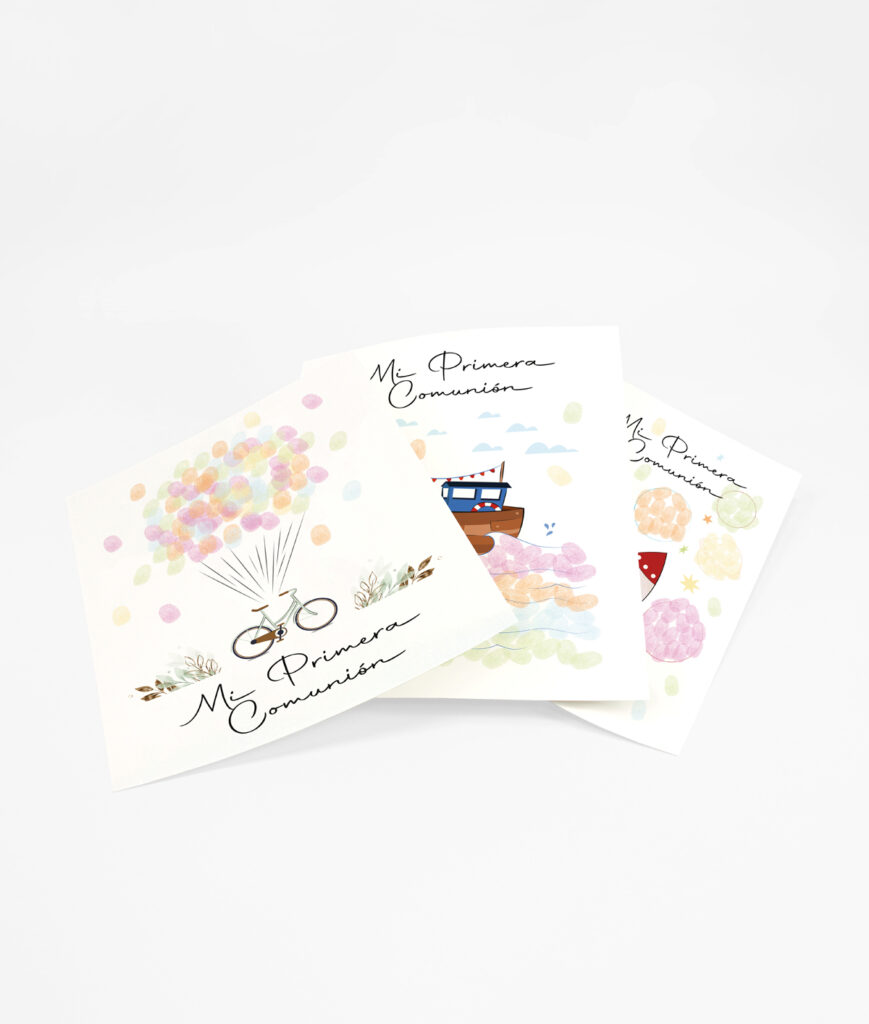 Láminas en papel de acuarela, de 30×40 cm para rellenar con las huellas de los invitados. Personalizables.
