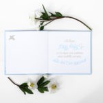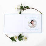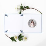Libro de firmas con portada personalizada o lisa. En aquellos con portada lisa es posible realizar un golpe en seco con el nombre del niño o la niña. Existen dos modelos diferentes de libros de firmas.