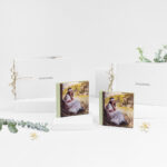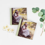 Lote de dos mini álbumes con portada personalizada o lisa en lino o polipiel. Cuatro tamaños diferentes. Siempre acompañados de su caja de cartón blanca.
