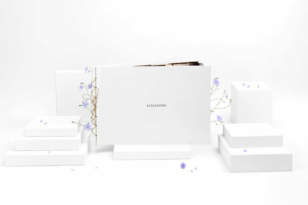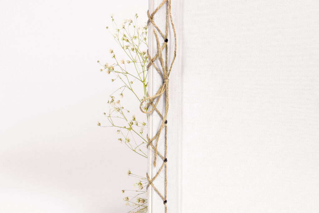 Un álbum elaborado en encuadernación japonesa y material lino liso. Cosido a elegir entre cuerda de cáñamo o lazo (colores disponibles en Kitoli Orders).