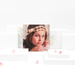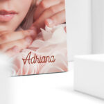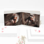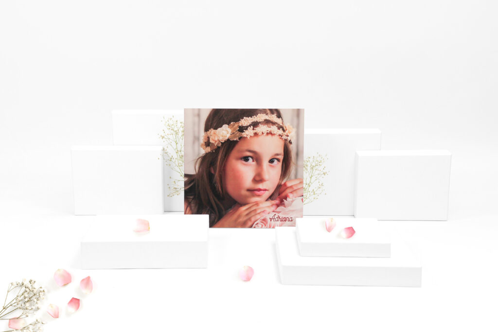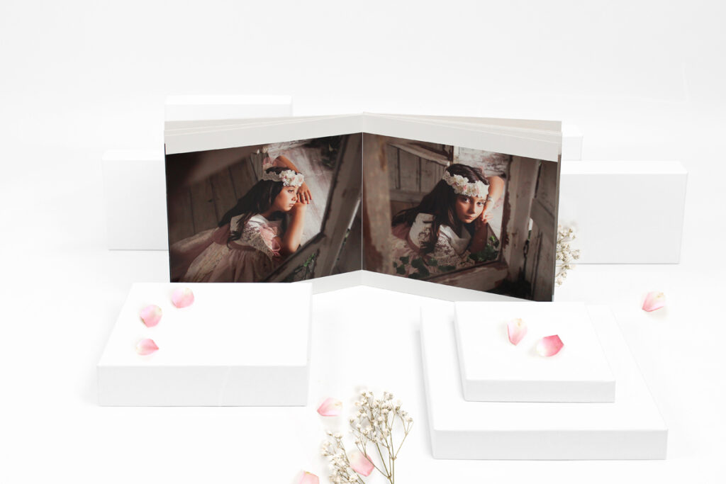 Álbum con portada personalizada completa. Disponible en cuatro tamaños. El álbum va acompañado de su caja de cartón blanca a medida.