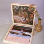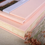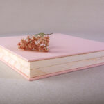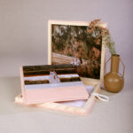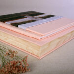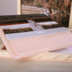 Álbum con portada personalizada o lisa en lino o polipiel. El álbum va acompañado de su caja de cartón blanca a medida.