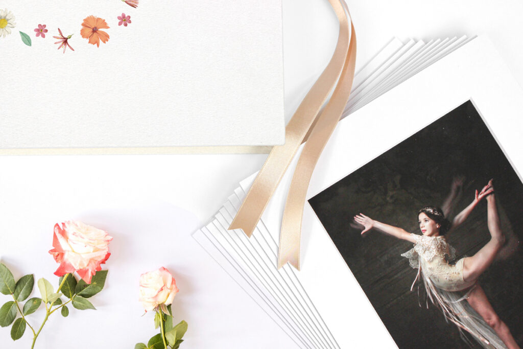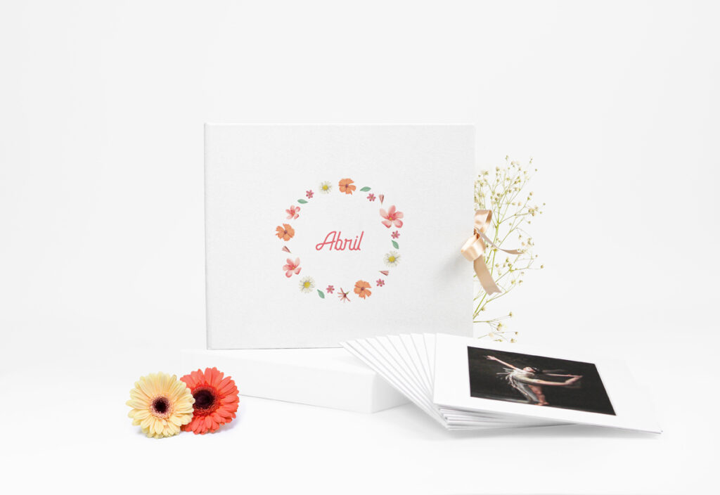 Álbum con portada personalizada o lisa en lino o polipiel. El álbum va acompañado de su caja de cartón blanca a medida.