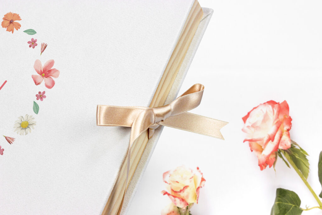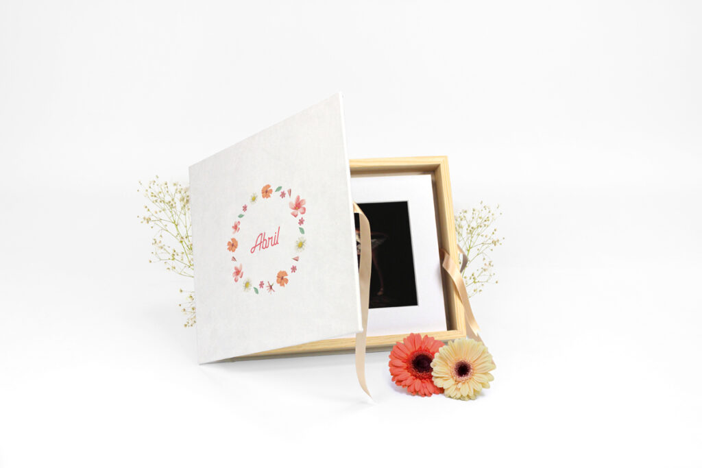 Álbum con portada personalizada combinada con lino. Lleva una franja para grabar el nombre mediante golpe seco. Disponibles cuatro tamaños diferentes y tres colores distintos a elegir. Acompañado de su propia caja de madera blanca a juego con el álbum. Incluye la opción de personalizar el interior de la caja con una fotografía.