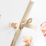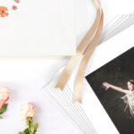 Álbum con portada personalizada o lisa en lino o polipiel. El álbum va acompañado de su caja de cartón blanca a medida.