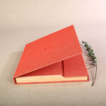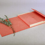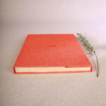 Álbum de lino con encuadernación japonesa. Disponible en dos tamaños distintos. Acompañado de su caja de cartón blanca a medida.