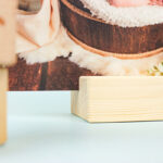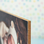 Photoblock de madera con fotografía laminada y peana de madera natural.
