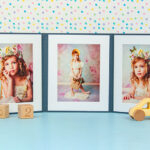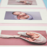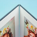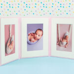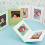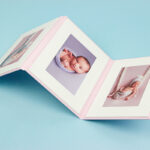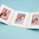 Tríptico con paspartú para tres fotografías con portada forrada en lino, tanto liso como estampado.